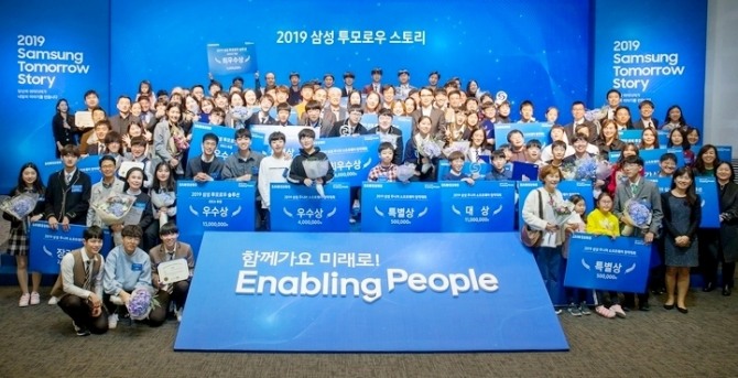 이미지 확대보기10일 삼성전자에 따르면 서울 서초구 삼성전자 서울 R&D 캠퍼스에서 열린 행사에서는 사회 현안 해결을 위한 창의적 아이디어를 내고 실행하는 공모전인 삼성 투모로우 솔루션, 미래 소프트웨어 인재 발굴·양성을 위한 공모전인 삼성전자 주니어 소프트웨어 창작 대회, 스마트 교육을 선도하는 교사를 위한 삼성 스마트스쿨 미래교사상 시상식이 각각 진행됐다.