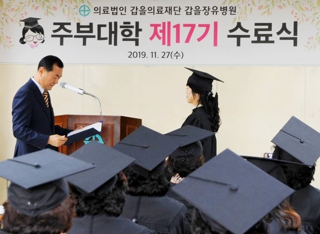 갑을장유병원 주부대학은 지역 주민과 유대형성, 의료사각지대에 있는 어려운 이웃에 대한 봉사활동과 기본적인 의료상식을 전달하기 위해 2005년부터 매년 진행됐다. 1기부터 올해 17기까지 870명의 졸업생이 배출됐다.