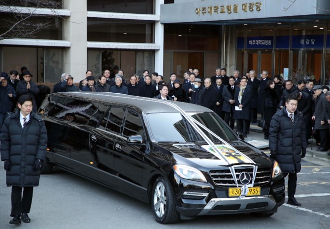 고 김우중 전 대우그룹 회장의 영결식이 12일 경기도 수원시 아주대병원 대강당에서 엄수됐다.