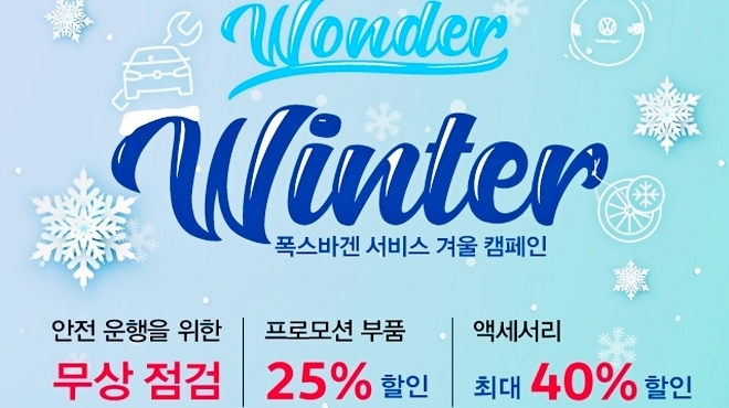 이미지 확대보기아우디폭스버겐코리아의 폭스바겐부문(사장 슈테판 크랍)은 고객의 겨울철 안전 운행을 돕기 위해 겨울맞이 서비스 캠페인을 진행한다고 12일 밝혔다.