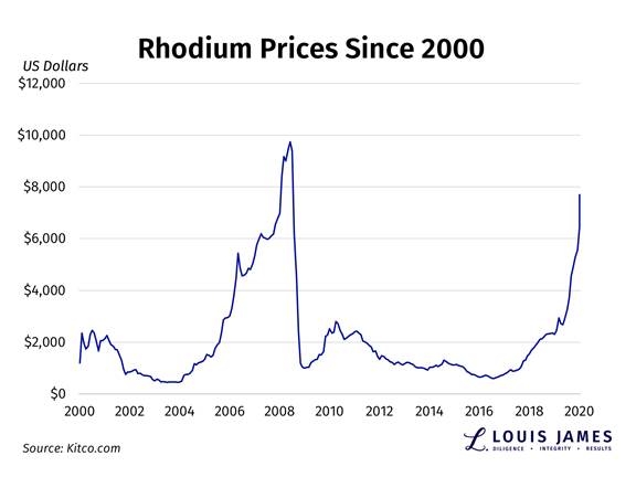 이에 따라 로듐 가격이 2008년 수립한 역대 최고가인 온스당 1만50달러를 돌파하는 게 아니냐는 관측이 무성하다.