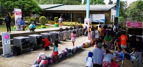 2일 LG전자에 따르면 필리핀법인은 최근 탈 화산 인근 지역에 마련된 대피소들을 방문, 무료 세탁방을 운영하고 의료 서비스를 제공했다.