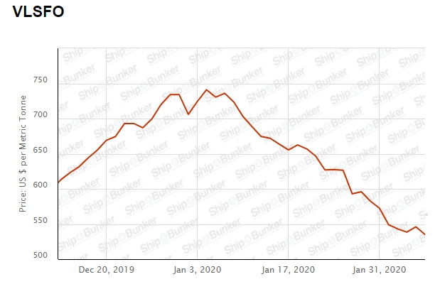그러나 1월 중순 부터 국제 유가가 떨어져 지난 7일 저유황유 가격은 535달러(약 63만83500 원), 고유황유는 322달러(약 38만4300 원)에 머물고 있다.