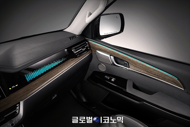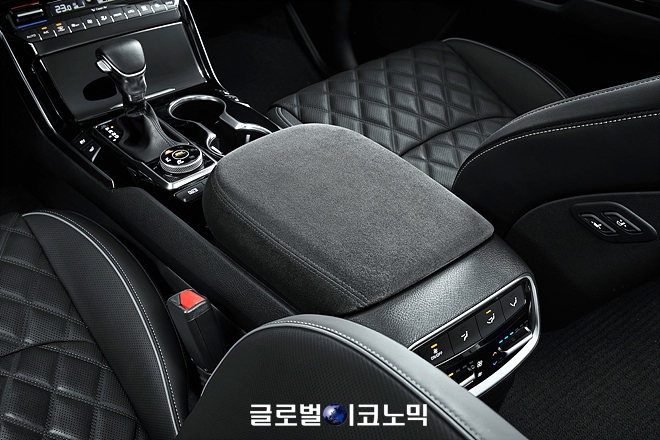 이미지 확대보기실내는 스티어링 휠(운전대), 센터 콘솔(운전석과 동승석 사이에 있는 수납공간), 1·2열 도어 암레스트와 도어 센터 트림(문쪽 팔걸이 및 문 안쪽 부분)에 부드럽고 내구성이 좋은 고급 소재 '알칸타라'를 입히고 동승석 크래쉬 패드에만 적용했던 무드 램프를 1열 양쪽 도어 트림까지 확장시켜 고급감을 높였다.