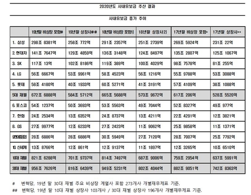 노동자당에 따르면 30대 그룹의 사내유보금은 지난해 말 현재 956조7626억 원으로 2018년 말 추산한 949조5231억 원보다 약 7조2000억 원 증가한 것으로 나타났다.