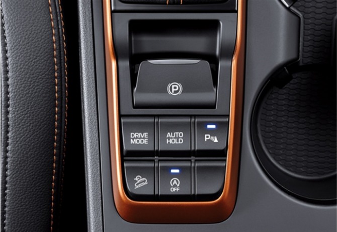 (1) 수동 정차 기능 : 자동차의 속도가 3km/h 이하에서 EPB 스위치의 조작으로 작동과 해제가 가능하다. 정차 기능을 해제하기 위해서는 이그니션 ON 상태에서 브레이크 페달을 밟고, EPB 스위치를 당기면 EPB는 해제되고 동시에 클러스터 계기판의 브레이크 램프도 소등된다.