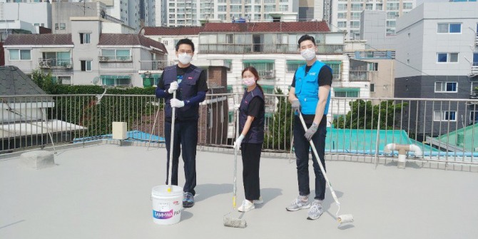 이미지 확대보기8일 삼화페인트에 따르면, 삼화페인트는 올해부터 사회복지법인 따뜻한동행과 함께 발달장애인 시설을 위한 공간복지 지원사업을 벌이기로 하고 그 일환으로 발달장애인 복지시설 '기분좋은그룹홈'을 선정, 지난 3일부터 4일간 노후주택 옥상에 차열 방수페인트를 시공했다.