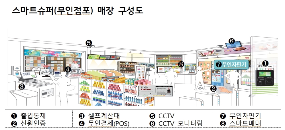 이번 시범사업에는 기존에 무인점포 기술을 도입해 운영하고 있는 일부 대기업 편의점 업계도 함께 참여해 해당 기술을 접목한 상생형 무인점포를 구축하고, 동네슈퍼에 스마트기술과 점포 운영 기법도 전수할 계획이다.