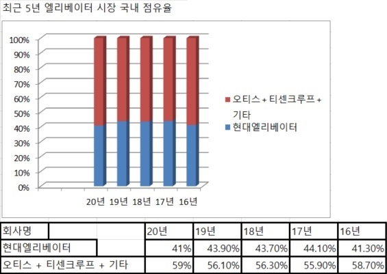 그는 또 “현대엘리베이터는 13년 연속 국내 승강기 시장점유율 40%로 1위를 차지하고 있고 리모델링 등에 따란 신규 수요가 꾸준히 늘어나는 추세"라며 "리모델링과 유지보수에 따른 엘리베이터 수요가 각각 3600억 원, 1조 원 규모"라고 덧붙였다.