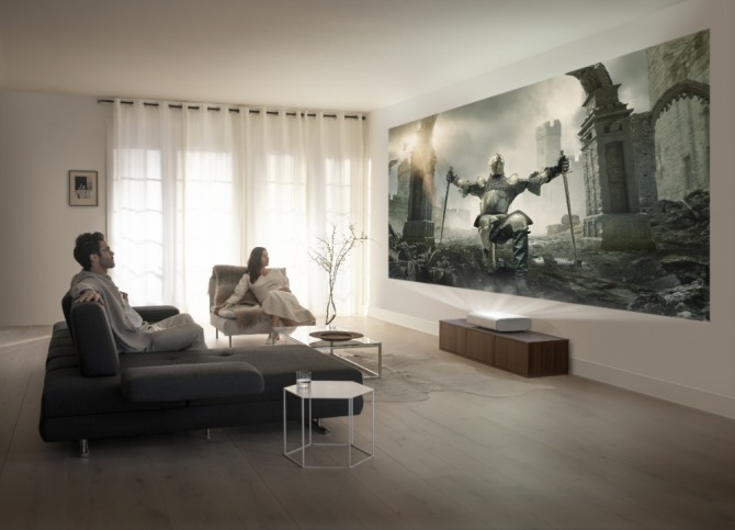 특히 이 제품은 고급형 모델에 한해 최대 330.2cm(130형)까지 스크린을 키울 수 있어 TV에서 구현되는 것과 동일하게 4K(3,840x2,160) 화질을 즐길 수 있다. 또한 2,000,000:1 명암비를 지원해 어두운 이미지 표현 능력도 뛰어나다
