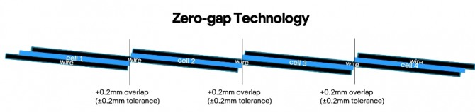 일반적으로 태양광 모듈은 수십 개 셀을 한 판에 모아 셀과 셀을 연결하는 형태로 만든다. 이에 비해 제로 갭 기술은 셀과 셀 사이 공간을 없앤다. 이를 통해 제로 갭은 일반 셀을 반으로 잘라 셀 표면적을 줄인 하프셀(Half cell)과 12와이어로 셀을 고정시켜 간격 없이도 물리적 안정성을 유지한다.