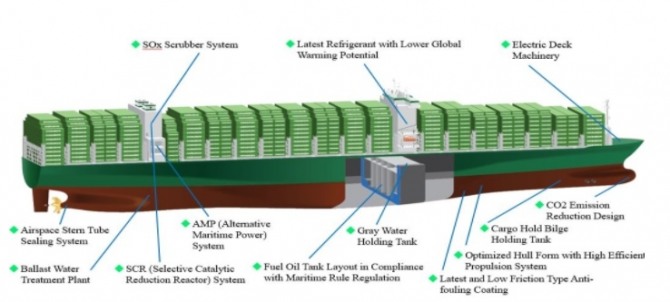 배기가스 배출 감소장치, 대체 해상 전력 등 친환경 설비 장착