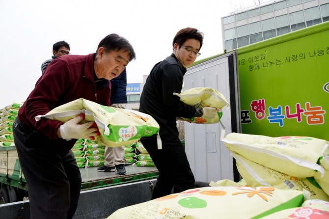 이미지 확대보기매년 2차례에 걸쳐 전달된 ‘사랑의 쌀’은 1만8000포대가 넘는다. 쌀은 효성과 자매마을인 경남 함안에서 구입하며 자매마을과의 상생은 물론 마포구 이웃들에게 품질 좋은 쌀을 제공해 일석이조 효과를 거두고 있다.