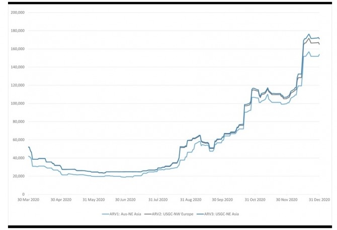 한편 미국 걸프만에서 유럽으로 가는 LNG 운임도 하루 31만691달러(약 3억4000만 원)로 고공행진 중이다.