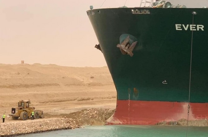 수에즈 운하 당국은 에버 기븐호가 강풍과 먼지 폭풍 때문에 운항 컨트롤 능력을 잃어 육지와 충돌했고 25일 현재까지도 선박 수십 척의 운항을 막고 있다고 밝혔다.