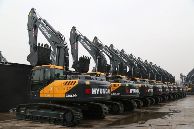 현대건설기계는 최근 중국 고객사에게 5.5~85t 급 굴착기와 휠로더 등 2500억원 규모 건설장비 판매 계약을 체결했다고 29일 밝혔다.