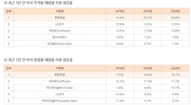 한화큐셀 관계자는 “미국처럼 치열한 시장에서 한화큐셀이 주거용과 상업용 태양광 모듈 부문에서 1위를 차지한 것은 의미심장한 대목"이라며 "첨단 기술력으로 경쟁업체가 추격하지 못하는 초격차 기술 개발에 더욱 주력할 방침"이라고 설명했다.