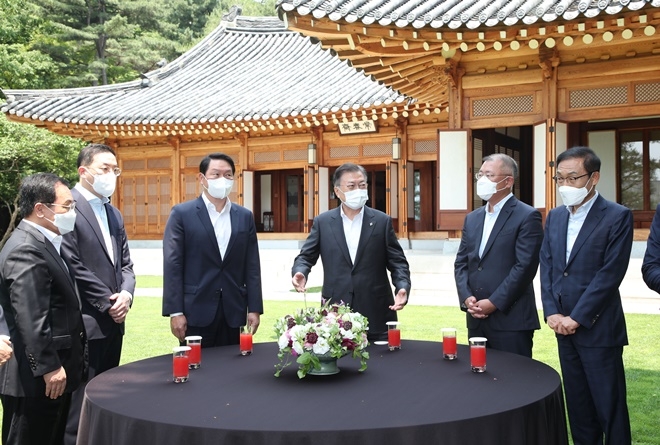 재계 총수들의 이같은 건의에 문 대통령은 "고충을 이해하고 있다"고 답했다. 문 대통령은 "국민들도 이 부회장 사면에 공감하는 부분이 많다"고 밝혔다.
