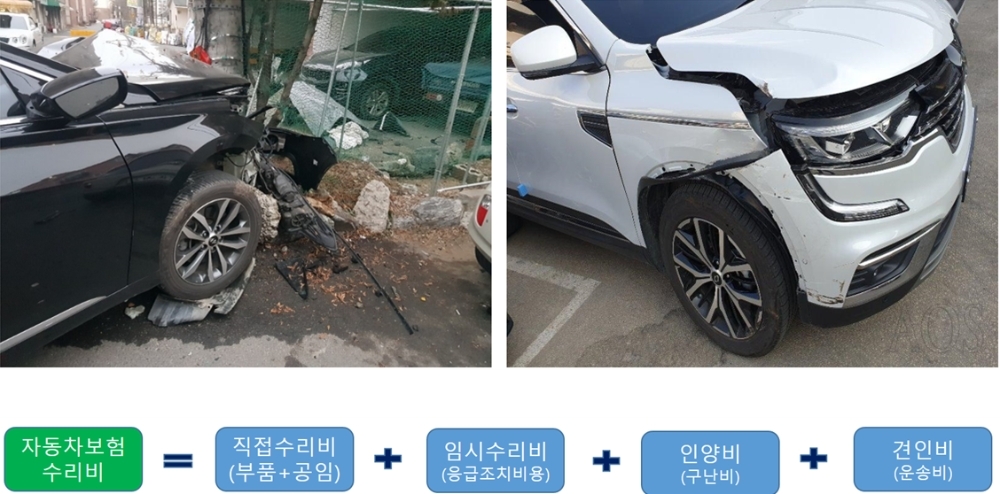자동차보험에서는 부품비용과 공임으로 구성되는 직접수리비 뿐만 아니라 임시수리비, 인양비, 견인비를 모두 수리비로 인정하여 보상한다. 다만 수리과정에서 나온 경제적 가치가 있는 부품이나 잔존물은 그 가액을 수리비에서 공제하고, 수리과정에서 엔진이나 변속기와 같은 중요 부분품을 교체한 경우에는 기존 부분품의 감가상각에 해당하는 금액을 공제한다. 이는 수리과정에서 차량 소유자가 재산적 가치가 있는 잔존물을 취득하거나 신품으로 교체하여 자동차의 가치가 상승하는 경우에는 추가적인 이득을 볼 수 있으므로 이를 배제하기 위함이다. 자동차보험에서는 실제 손해가 발생한 만큼만 보상해주는 실손보상의 원칙과 도덕적 위험을 감소시키기 위한 이득금지의 원칙이 적용되고 있기 때문이다.