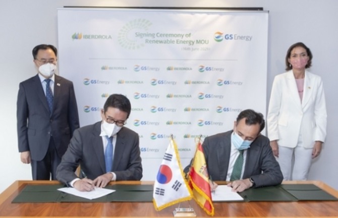 이날 양해각서에 따라 GS에너지는 이베르드롤라와 함께 앞으로 6개월 내 조인트벤처(합작사)를 설립한 뒤 태양광·육상·해상 풍력발전의 재생에너지 사업을 공동개발할 예정이다.