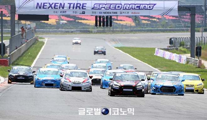 이미지 확대보기넥센스피드레이싱 2R GT-300 결승 경기 장면. 사진=글로벌이코노믹 김현수 기자60kg 핸디캡을 안고 주행한 정남수는 8랩에서 바퀴가 빠지는 불운을 겪으며 시즌 2연승 도전에 실패했다.
