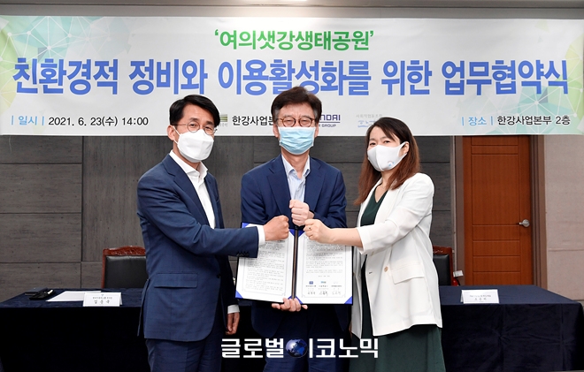이미지 확대보기현대차그룹은 지난 23일 서울시 한강사업본부에서 신용목 서울시 한강사업본부 본부장, 김동욱 현대차그룹 부사장, 조은미 사회적협동조합 한강 대표 등 주요 관계자들이 참석한 가운데 '여의샛강생태공원 친환경적 정비와 이용 활성화를 위한 협약'을 체결했다고 24일 밝혔다.
