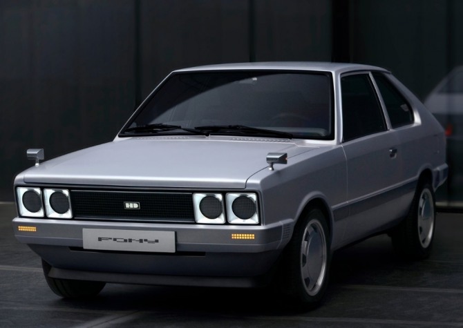 포니 EV 컨셉트카는 1975년 출시된 현대 포니 3도어를 전기차 구동계, 픽셀 전조등, 카메라를 갖춘 사이드미러를 장착해 복원했다.
