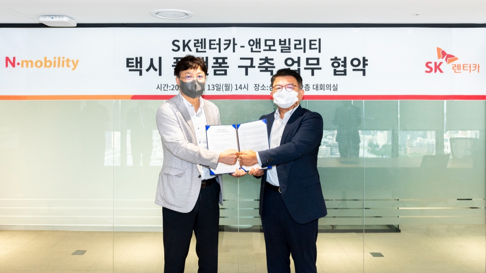16일 업계에 따르면 SK렌터카는 서울 종로구 SK렌터카 본사에서 ‘나비콜(NaviCall)’을 운영하는 앤모빌리티와 ‘택시 플랫폼 구축 업무 협약’을 맺었다.