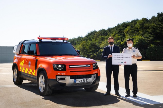 이미지 확대보기재규어 랜드로버 코리아는 지난달 30일 강원소방본부의 화재·구조·구급 같은 각종 재난 현장 구조 활동을 지원하기 위해 '랜드로버 올 뉴 디펜더 110 1대'를 기증했다고 1일 밝혔다.