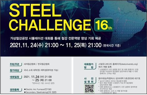 금년(16회)도 스틸챌린지 대회는 11월 24일 오후 9시부터 25일 오후 9시까지 24시간동안 진행된다. 올해 경연공정은 2차 정련(Secondary Steelmaking)과 전기로(Electric Arc Furnace)이다.