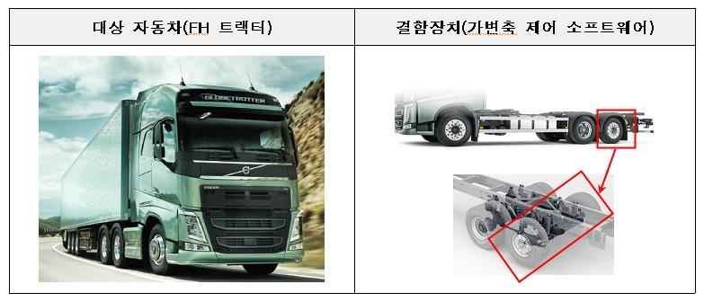 이미지 확대보기볼보트럭코리아에서 수입·판매한 FH 트랙터 등 2개 차종 3095대는 가변축 제어 소프트웨어 설정 오류로 구동축 하중이 10t 이상임에도 가변축 자동 하강이 지연되는 현상이 나타났다.