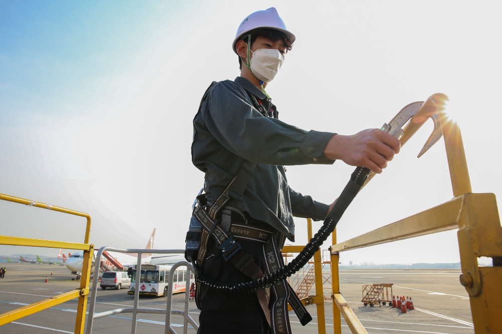 티웨이는 △고소작업차 작업 시 안전수칙 △새로 갖춘 안전대 착용 숙지 등 공항 램프 내 고소 작업 시 지켜야 할 안전수칙에 중점을 두고 점검을 진행한다.
