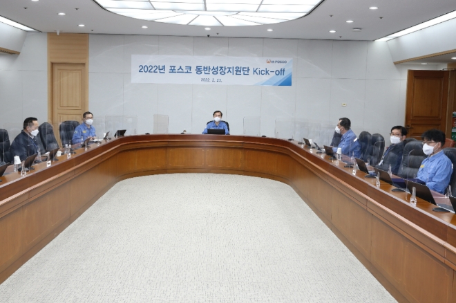 이날 비대면 화상회의로 개최된 행사는 이주태 포스코 구매투자 본부장, 김태억 설비자재구매실장, 지원 대상 중소기업 7개사 대표들이 참석한 가운데, 2022년 지원 사업의 시작을 기념하고 산업생태계 강건화를 위한 포스코의 기업시민 브랜드 ‘Togehter With POSCO’를 공유하는 장으로 마련됐다.