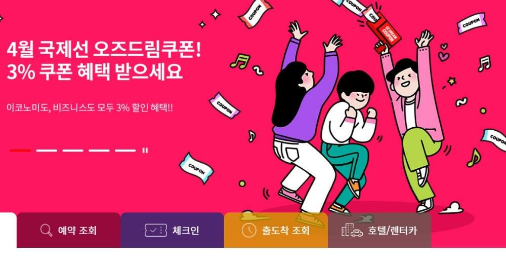 먼저 ‘오즈 드림 쿠폰’ 이벤트를 통해 아시아나항공 홈페이지에서 국제선 항공권을 발권하는 고객들에게 3% 할인 쿠폰을 제공한다.