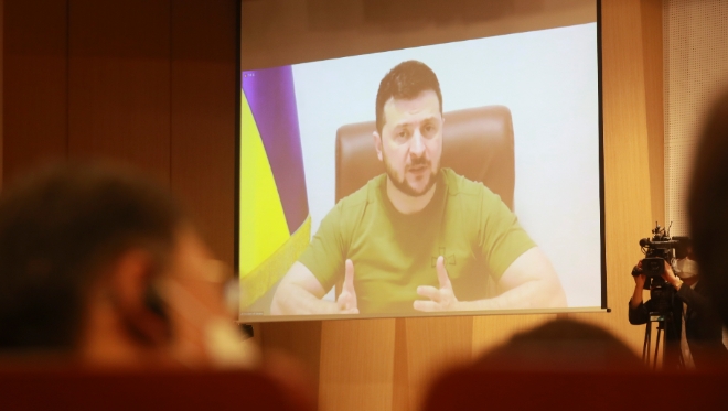 이미지 확대보기블라드미르 젤렌스키 우크라이나 대통령이 지난 11일 화상회의를 통해 우리 정부에 적극적인 지원을 요청했다. 젤렌스키 대통령은 화상연설을 통해 "한국는 러시아의 전차와 함선, 미사일을 막을 수 있는 여러 군사장비가 있다"면서 "러시아에 맞설 수 있게 도와달라"고 호소했다.