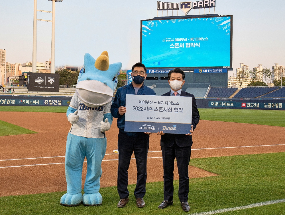 에어부산은 이날 NC 다이노스 야구단과 공동 마케팅을 위한 업무협약도 체결했다. 이번 업무 협약에 따라 에어부산은 ‘이닝 이벤트’를 통해 항공권과 에어부산 굿즈 등을 제공하며, NC 다이노스 구단 스태프와 선수가 내륙 노선 이용할 시에는 10% 추가 할인 혜택도 제공하기로 하였다.