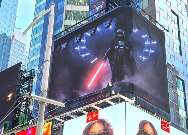 이미지 확대보기이 영상은 작품 속 주요 등장인물인 다스베이더가 우주선에서 등장해 선명한 광선검을 휘두른 후 사라지며 "올레드 TV로 보세요(See it with OLED)"라는 문구로 끝난다.