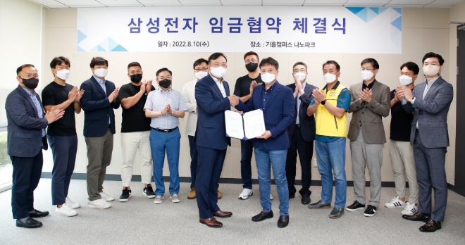 체결식엔 최완우 DS부문 인사팀장(부사장), 신인철 삼성전자 교섭대표(상무), 삼성전자노동조합 공동교섭단 김항열 위원장, 이재신 위원장, 김성훈 위원장, 손우목 부위원장 등이 참석했다.