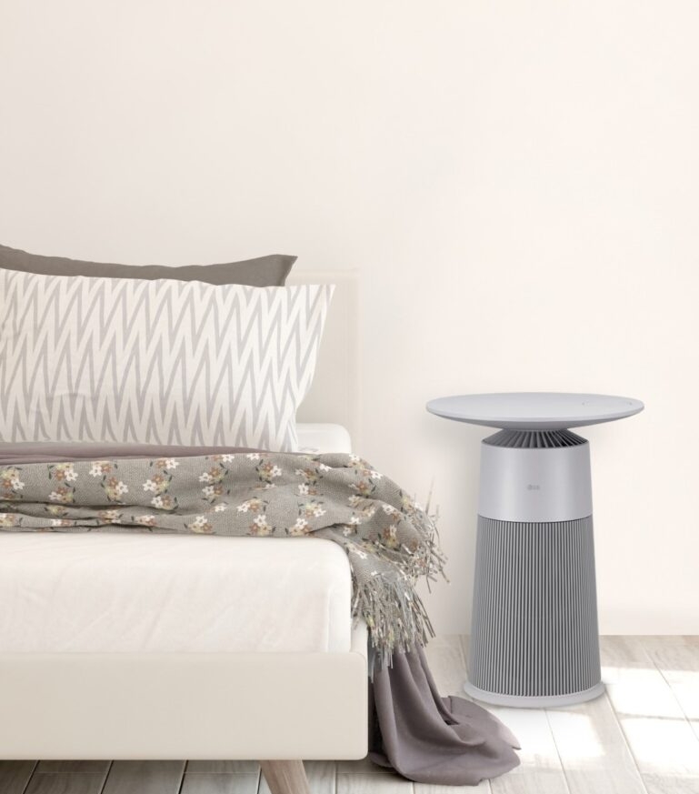 신제품 아래쪽에는 360도 방향으로 공기를 빨아들일 수 있는 '퓨리케어 360 공기청정기'가 원통형 디자인으로 탑재됐고, 제품 위쪽은 원형 또는 타원형 형태의 테이블로 디자인됐다.
