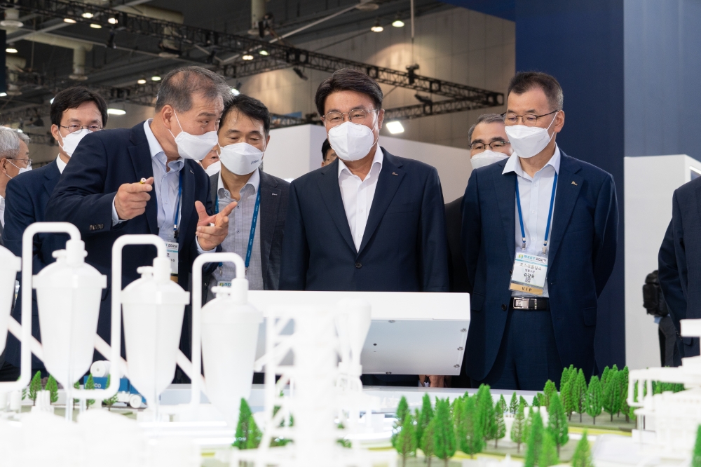 최 회장은 포스코그룹 전시관 방문후에 현대자동차, SK그룹 전시관도 방문해 타그룹사가 추진하고 있는 수소사업의 트렌드도 직접 확인했다.