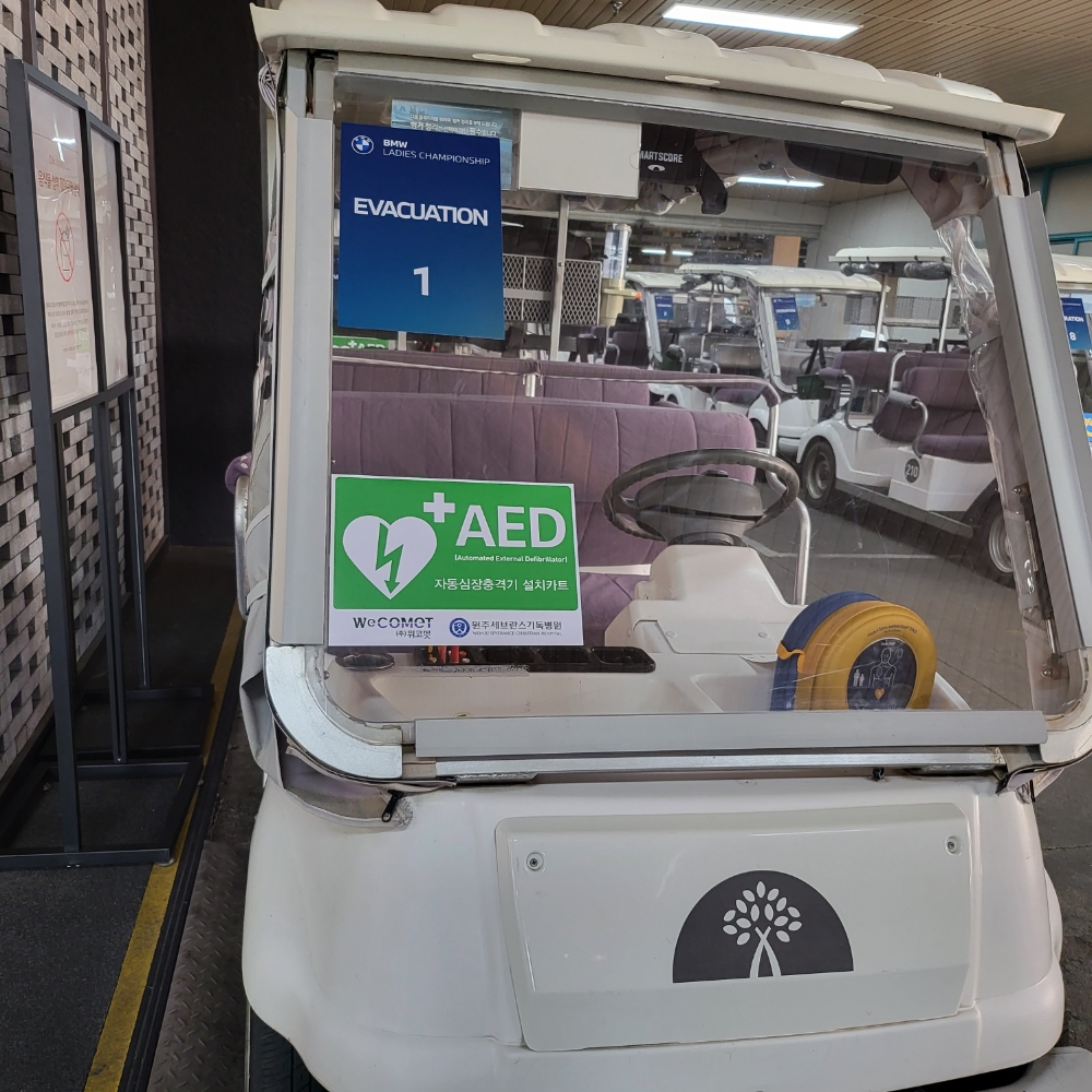 자동심장충격기는 클럽하우스에도 비치돼 있지만 대회중에 코스에서 생길 만일의 사고에 대비해서다. 사실 심장자동충격기는 선수는 물론이고 갤러리들에게 생명과 직결되기 때문에 필수품이라는 것은 두말 나위도 없다.