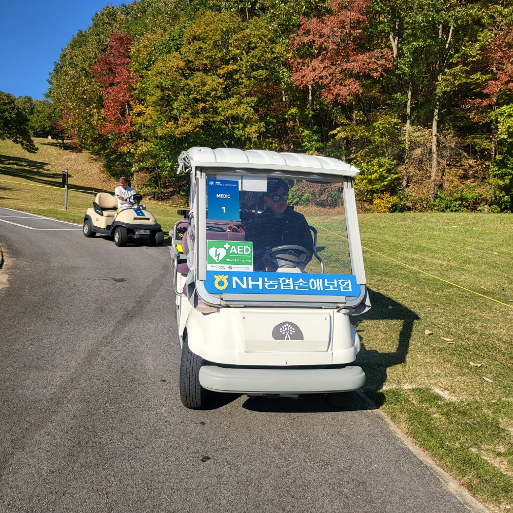 이미지 확대보기자동심장충격기를 실은 5대의 골프카트가 대회코스를 쉴새 없이 오고가고 있다. 미국여자프포골프(LPGA)투어 BMW 레이디스 챔피언십이 열리고 있는 강원도 원주 오크밸리 컨트리클럽과 긴밀하게 협조해 대회기간 동안 자동심장박동기를 장착한 골프카트를 직원들이 운행하고 있다.