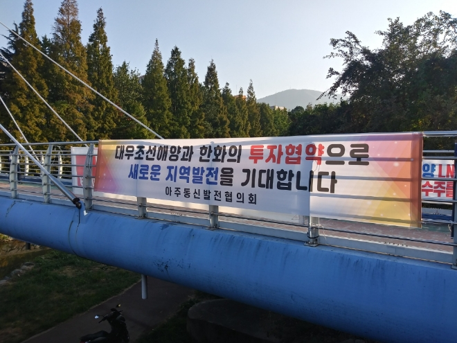 이날 거제시내는 낮에는 물론 밤에도 한산하다 싶을 정도로 조용했다. 서울 이태원 핼러윈 참사를 접한 시민들이 희생자의 넋을 기리기 위해 활동을 자제한데다, 북한이 울릉도 방향으로 미사일을 발사해 전쟁 도발 위협까지 겹친 탓이었다. 이태원 참사 희생자를 추모하는 현수막이 시내 곳곳에 걸려 있었는데, 직전까지는 한화의 대우조선해양 인수를 환영한다는 문구가 새겨진 현수막이 자리했었다고 한다. 기자는 대우조선해양 옥포조선소 서문 앞에서 이를 볼 수 있었다.
