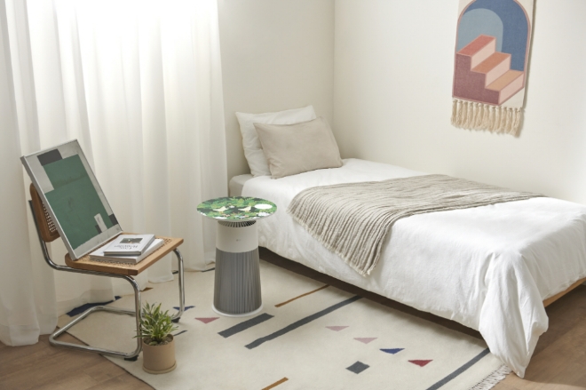 이 제품은 차별화된 편의 기능과 청정 성능을 갖췄다. 테이블 하단에는 공간의 분위기를 바꿀 수 있는 무드 조명이 있으며, 상단에는 스마트폰이나 무선 이어폰 등을 무선충전할 수 있다. 또 이 제품은 구입 후에도 LG 씽큐 앱의 'UP가전 센터'를 통해 새로운 기능을 업그레이드로 추가할 수 있다.