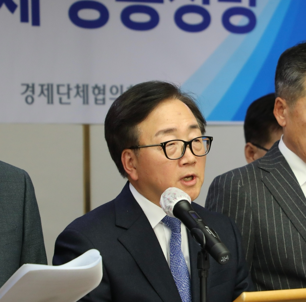 이미지 확대보기한국경영자총협회·대한상공회의소·전국경제인연합회·한국무역협회·중소기업중앙회·한국중견기업연합회 경제6단체 부회장단은 6일 오전 국회 소통관에서 '노동조합법 개정 반대 공동 기자회견'을 개최하고 이같이 밝혔다.
