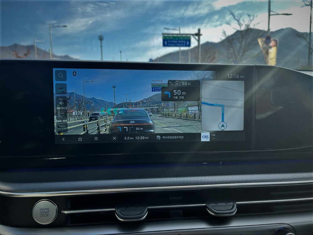이미지 확대보기놀란 것은 '증강 현실 내비게이션'이다. 제네시스 GV80 등에도 적용이 되면서 익숙해진 기술이지만, 이 차는 조금 달랐다. 더 향상된 기능을 포함하고 있었다. 중앙 화면에는 전방 카메라가 찍고 있는 도로 화면이 실시간으로 비춰졌다. 직진에서는 푸른색 라인이, 코너를 돌 때는 화살표가 생기면서 "여기서 좌·우회전해야 합니다"라고 실시간으로 말해주는 것 같았다. 운전이 서툴고 길 찾는 거에 어려움을 가진 누구나 한 번에 길을 찾아갈 수 있겠다는 생각이 들었다.