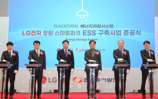 이미지 확대보기회사는 경남 창원시에 위치한 LG스마트파크에서 ‘창원 LG스마트파크 피크저감용 ESS 준공식’을 27일 가졌다고 밝혔다. 행사에는 LG전자 류재철 H&A사업본부장 사장, 김영문 한국동서발전 사장 등이 참석했다.