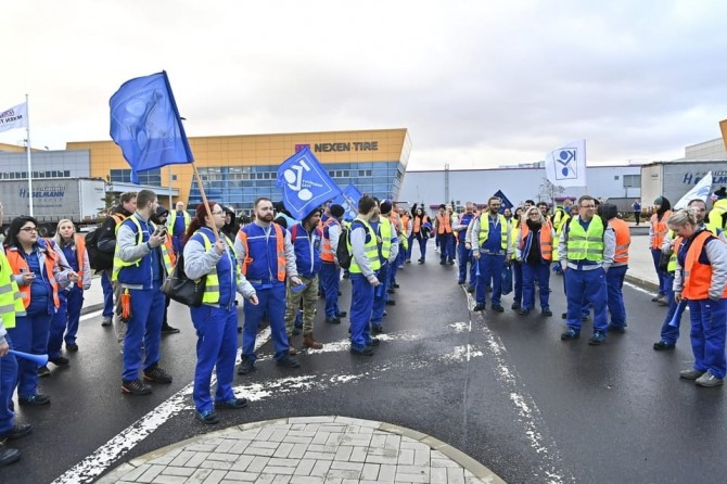 이미지 확대보기2일 외신 등에 따르면 넥센타이어 체코공장 노동조합은 지난달 31일 무기한 파업에 돌입했다. 이번 파업으로 인해 주요 생산 라인은 모두 멈춘 것으로 알려졌다. 이번 파업에는 1100명의 직원 중 17%인 190여명이 참여했다.