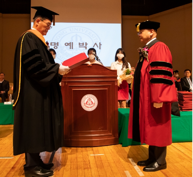 이미지 확대보기17일 회사 측에 따르면, 세종대는 이날 세종대 대양홀에서 ‘제81회 전기 학위 수여식’을 열고, 구 회장에게 명예공학박사 학위를 수여했다.
