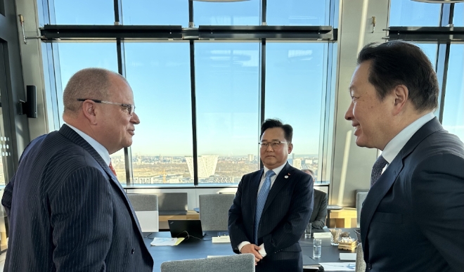 이미지 확대보기최태원 SK그룹 회장이 유럽에서 글로벌 행보를 가속화하고 있다. 유럽 각국 정부 관계자들과 만나 2030 세계박람회 부산 유치에 나서는 것과 동시에 SK그룹의 주력사업 확장을 위한 협력방안 등을 주요 기업 CEO들과 논의했다.